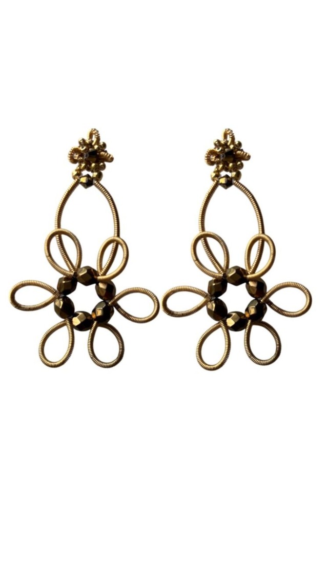 「無限」の意味を持つ「インフィニティ」はnonjieらしいキュートで意外性の高いアクセサリー。 人気の秘密はなんと言っても、その軽さにあります。ワイヤーをくるくるとコイル状に巻いたパーツをメインに形作っています。 洋服や年齢を選ばない、可愛くセクシーなデザインは1つあると重宝する事間違いなし。 使用素 材:ワイヤー、ビーズ、など カラー:ゴールド/シルバー/ブラック サイズ:約6.2cm x 4cm ピアスはキャッチ式 イヤリングはネジバネ式