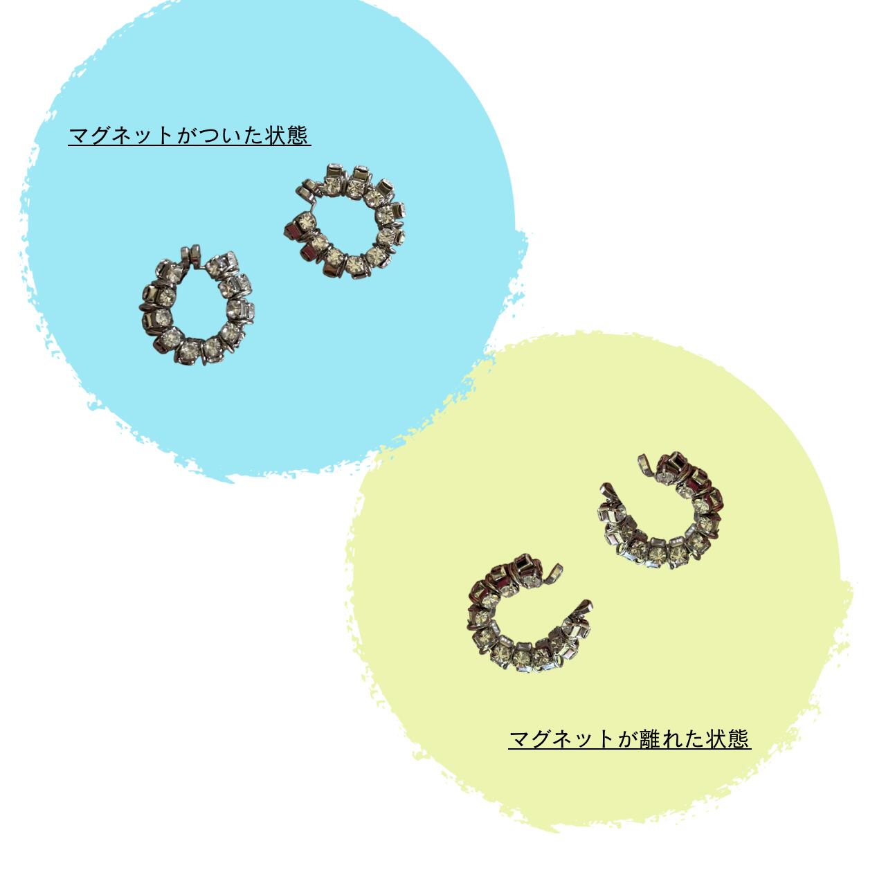 ピアスホールのない方もピアスのような感覚でつけられる、磁石の力で装着する金具を使用