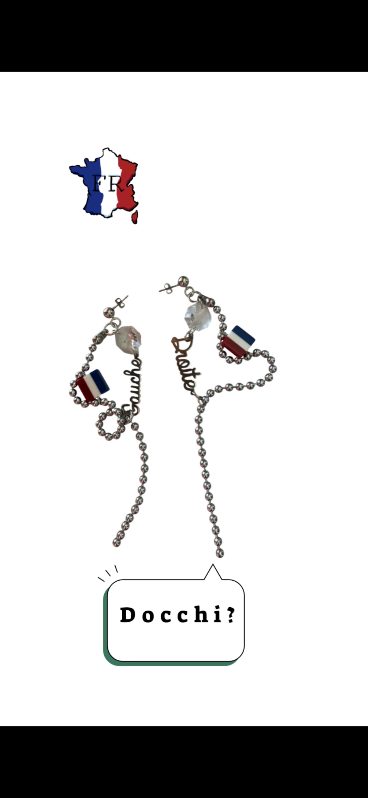 フランス国旗とgauche(左)、droite(右)の文字が小粋なピアス/イヤリング。