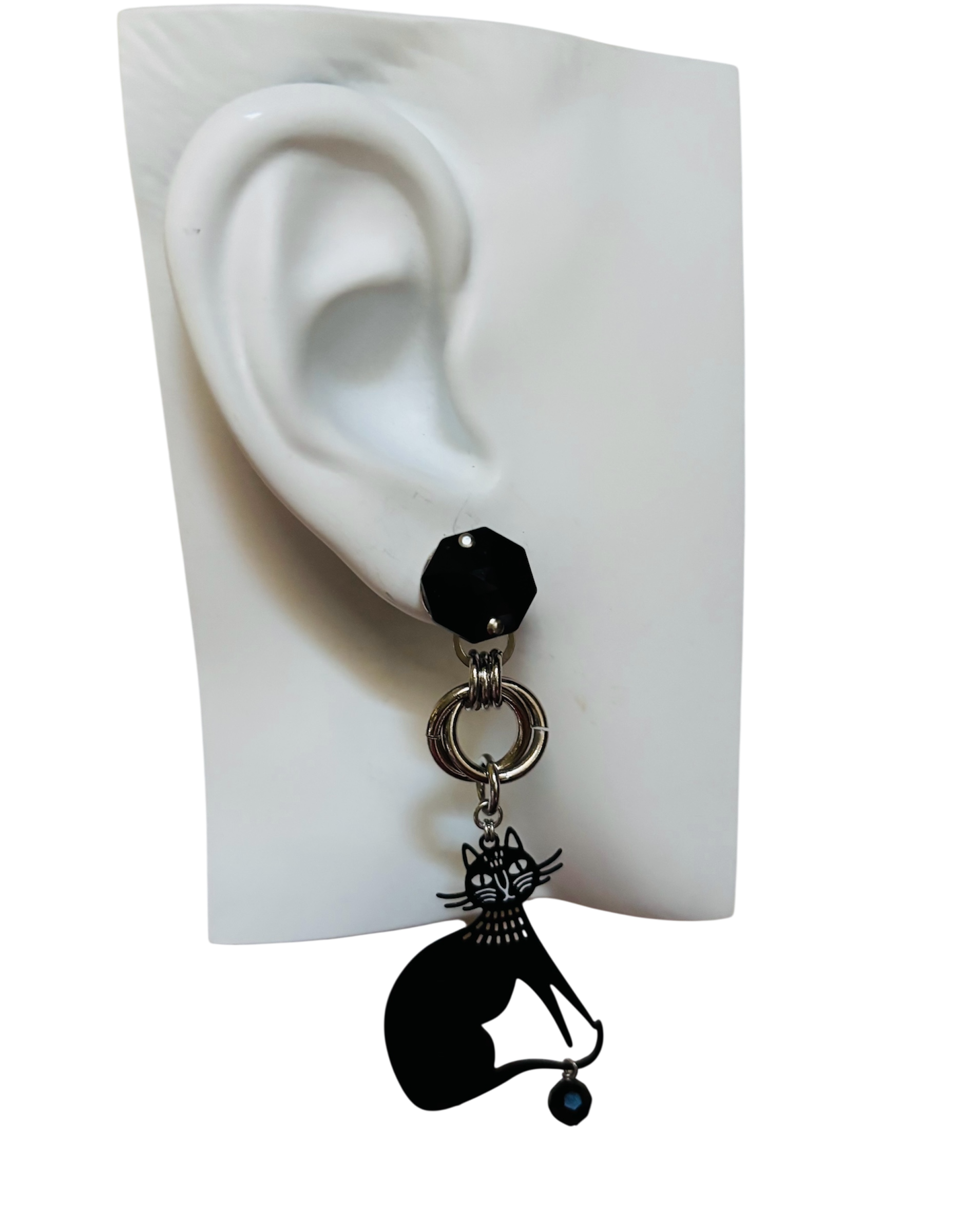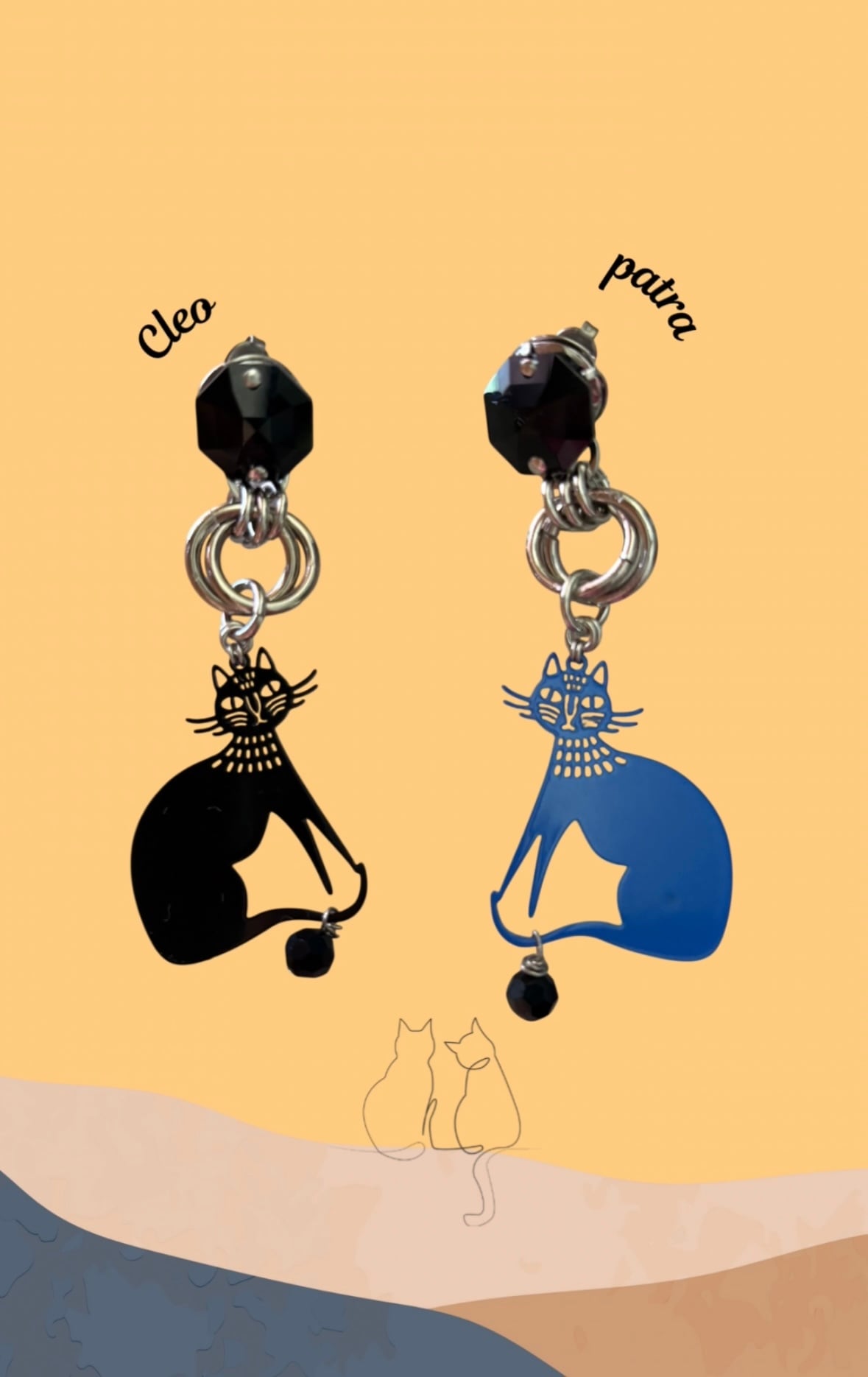 黒猫(クレオ)と青猫(パトラ)のピアス ・・・・ 2匹で1ペアです。